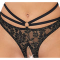 Longline bra and crotchless Rio thong in a set from Abierta Fina. Both pieces are black with gold-coloured details. The front is made of floral lace with woven-in metallic threads. The back is made of stretchy powernet. The longline bra with lightly padded underwire cups brings the bust into top shape and directly into the field of vision. The criss-crossing stretch straps at the neckline, the halterneck and the straps are adjustable to fit. The sophisticatedly designed Rio thong with stretch waistbands seduces with its crotchless design and a stimulating chain that can also be removed. Longline bra and crotchless Rio thong in a set. Black with gold-coloured details. Lace at the front with woven-in metallic threads. Stretchy powernet at the back. Longline bra with lightly padded underwired cups. Adjustable straps around the neckline and halterneck. Adjustable bra straps. Inviting crotchless Rio thong. Removable, stimulating chain at the crotch. Provocative elegance! Lace 95% polyamide, 5% metal powernet 90% polyamide, 10% spandex.