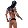 Short hooded top, thong, leash and 2 wrist cuffs in a set from Svenjoyment BONDAGE. The noble black matte look nestles close to the skin. The top only covers the top of the chest and features a clever hood that can be completely closed with a 2-way zip perfectly enclosing the head. The included leash can be attached to a ring at the front of the neck with its snap hooks. The thong has an underlaid zip at the front. The included wrist cuffs can be attached to the ring on each side of the waistband with its practical snap hook chains. The adjustable hook-and-loop fasteners on the restraints allow for pleasurable bondage games. Bondage set in an elegant matte look Short hooded top with a thong Includes a leash and 2 wrist cuffs Closable hood with a 2-way zip Ring at the front of the top for the leash Thong with an underlaid front zip Rings for the wrist cuffs at the sides of the thong Soft and stretchy for high comfort With intricate details for bondage games! 90% polyester, 10% spandex.