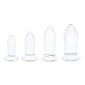 Dial-up your derriere with the new b-Vibe 4- Piece Glass Anal Dilators Set! The Glass Anal Dilators Set consists of 4 small-to-large sizes, body-safe glass anal plugs explicitly designed to open up and relax the anal sphincter and rectum- a process that is often referred to as anal training. Crafted from special borosilicate glass thats 100% shatterproof, each tapered plug offers easy insertion, while the flared base provides maximum comfort for extended wear. Compatible with all types of lube and perfect for solo anal masturbation you can use the Glass Anal Dilators Set to train your booty to accept larger toys. These progressively larger backdoor dilators can be used in the preparation for any booty play, to facilitate pleasurable anal sex or simply for added sensation. Build up to pleasurable anal sex with a partner and experiment with added sensations- pop these temperature-friendly glass plugs in the fridge for a chilly feel or run them under warm water to heat things up! Its always fun, whether you are new to anal play or a seasoned connoisseur. The Glass Anal Dilators Set includes 4-Piece Glass Plug Set Guide To Anal Play User Guide Sizes 1.7 Wide x 3 Inches long 1.93 Wide x 3.34 Inches long 1.93 Wide x 4.1 Inches Long 2.38 Wide x 4.2 Inches long