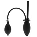 This is an Enema Classic Favourite. This butt plug has a rubber tube running through it. Fluids can pass through while it is inflated. Once the plug is inserted and inflated the large rubber hose can be hooked to an enema bag. When the time comes to administer the enema, the fluid will flow through the enema butt plug into the colon. The inflatable plug prevents pushing out the plug and the enema until the desired time arrives. Inflates by means of a bulb with release valve. The Enema Plug is 4.5 inch long and 1.5 inch wide. When inflated, it widens to a little over 2 inches wide.