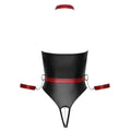 Strapless, crotchless thong bodysuit Removable and adjustable harness With a collar and wrist cuffs Elegant matte look in black and red Detachable snap hook chains Inviting crotchless design Detachable stimulating chain at the crotch Soft and stretchy for high comfort Animates to captivating moments! Strapless, crotchless thong body from Cottelli BONDAGE in a noble black matte look. It comes with a detachable harness in a red matte look with silver-coloured metal accessories. The snap hook chains are detachable from the harness so that the collar, waist belt and handcuffs can also be worn on their own. The collar and waist belt are adjustable with press studs, the wirst cuffs with hook-and-loop fasteners. A stimulating chain leads through the completely open crotch, which can also be removed. 90% polyester, 10% spandex.