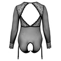 Excitingly transparent long-sleeved body Delicate powernet with lace inserts Crotchless design up to above the bottom Large back cut-out Clip fastening at the back of the neck Two adjustable and detachable suspenders Soft and stretchy for high comfort Delicate transparency brazenly crotchless! Black-transparent, crotchless and long-sleeved body from Cottelli CURVES made of fine powernet with inserts in delicate lace. Extremely stretchy and soft to the touch for a close fit and maximum comfort. Large cut-out at the back, clip fastening at the back of the neck. Featuring a crotchless design up to above the bottom. The two suspenders at the front are adjustable and also completely detachable. 90% polyamide, 10% spandex.