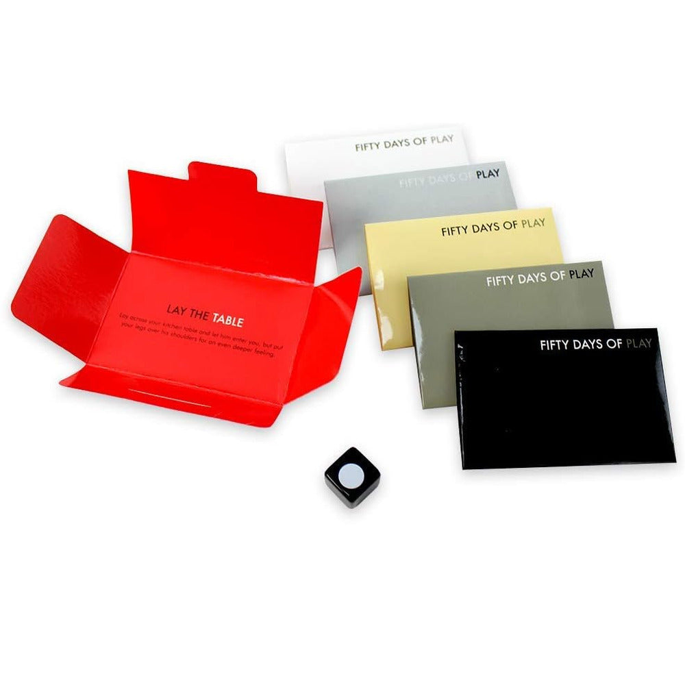 Who will be the dominant player today and who will play a more submissive role Only the envelope can decide, Fifty Days of Play has 50 secret envelopes that progress through 5 levels of play, ranging from intimate moments together, through stimulating scenarios, to erotic surprises. Not only can you use the envelopes as part of this game, but you can also sneak envelopes into your partners purse or wallet as a naughty surprise that is waiting for them when they get home. On a weekend away why dont you both randomly choose a few envelopes and use them to fill your time away with erotic ideas Fifty Days of Play is a versatile game for you both to share whenever, and however, you like.