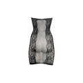 Strapless mini dress with contrast lace pattern and fishnet. Can be worn multiple ways. This dress has a lot of stretch and can be worn from UK size 6-to 14.