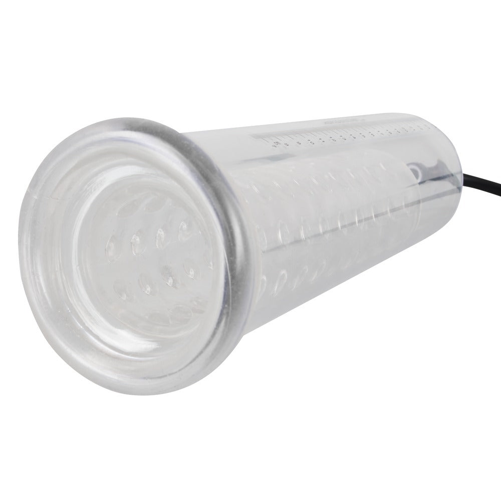 Enjoy awesome pleasure as you train your penis to top form with this transparent penis pump with studded inner sleeve and handy pump ball. You can see how much progress you have made enlarging your penis from the measuring scale on the side of the tube.