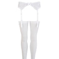Your erotic seduction set! White is said to be that innocent, but nevertheless, this set is pure erotic! White lace suspender belt with adjustable suspenders. Simple white stockings included. 100 per cent polyamide.