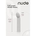 At Nude, we believe in the power of purity and quality. Thats why every one of our products is meticulously crafted to provide you with an experience thats as natural as possible. Say goodbye to anything less than extraordinary and unlock the true essence of pleasure with our clean and refined toys. Experience the pleasure revolution thats sweeping the world the Nude revolution. Our products are more than just toys theyre gateways to euphoria and liberation. Lets get naked and unleash your most audacious fantasies with Nudes premium range of sensual delights. Its time to redefine pleasure, the Nude way. For ease of use, this travel-sized G-spot Vibrator Aulora by Nude has a single-button operation to cycle through the 10 strong vibrations. It has 7 rhythms and 3 speeds. The shape and size make it perfect for beginners and for anyone who likes subtle and tantalizing G-spot stimulation. The Nude vibrator is made of smooth soft silicone and ABS, free of phthalates and body safe. Aulora has an IPX6 rating for water resistance. For charging after use the vibrator has a waterproof charging hole. A USB pin cable is included. After a full charge, your Nude vibe is ready for 90 minutes of nudelicous delight. Lets get naked and discover the world of Nudelicious ecstasy! Nude Aulora Travel G-spot vibrator 7 Vibration rhythms, 3 speeds Single button operation Made of silicone and ABS Body safe, free of phthalates IPX 6 water resistance Toy bag included Rechargeable, waterproof charging hole USB-pin cable included Length 14,1 cm Diameter 3 cm