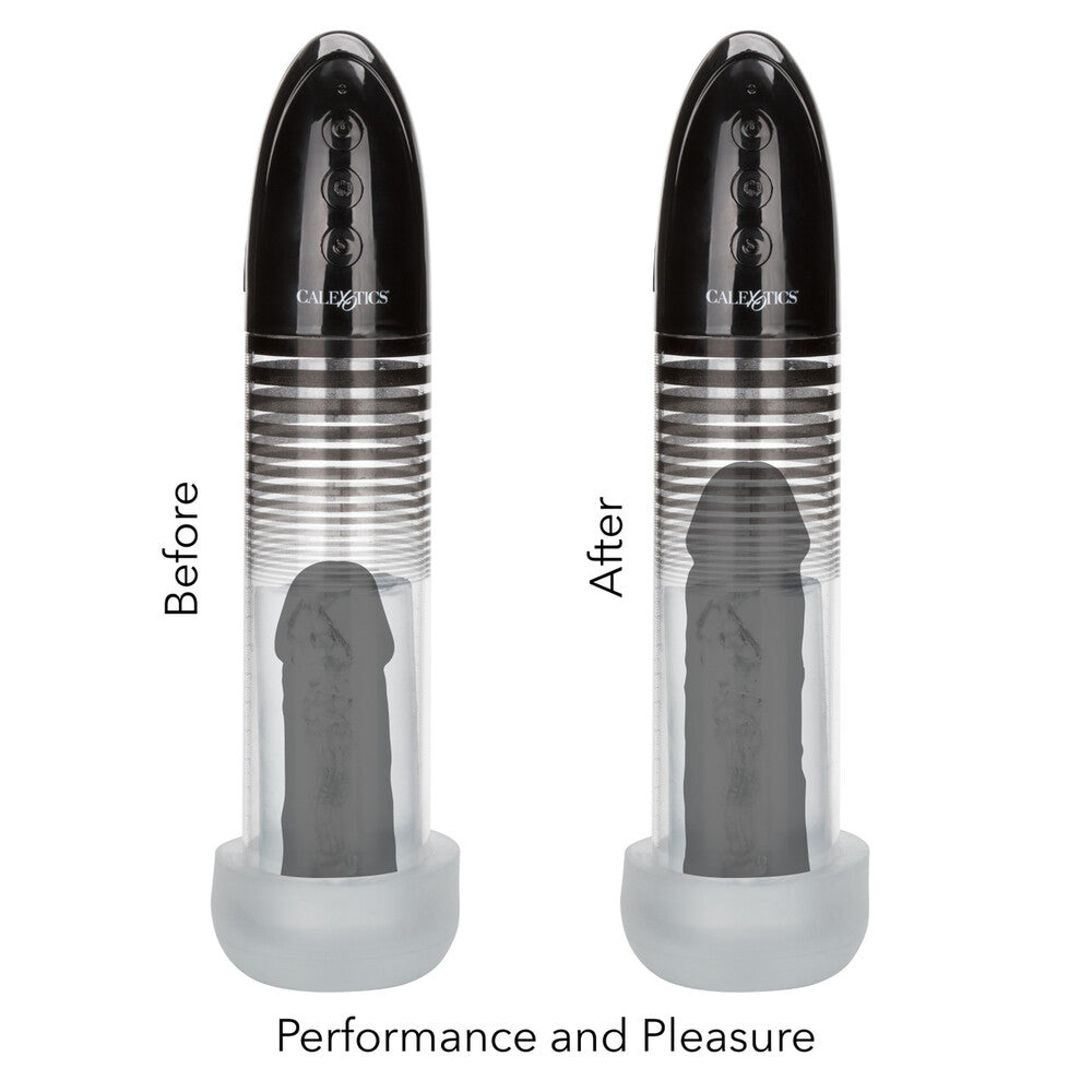 Maximize your pleasure tool with the Optimum Series Automatic Smart Pump, a sleek, durable penis pump sex toy for men, made for superior suction and performance enhancement. Increase endurance, improve stamina and amplify your rod with 3 unique enhancement exercise modes. The sleek smart pump has easy-touch controls and a quick air release button for customizable pumping. While the thick open-end sleeve and tight, nubbed chamber give you sinful stroking pleasure with or without the pump. Never settle for less when it comes to the size of your pleasure with the Optimum Series. The cylindrical pump and thick, durable sleeve are designed to create the perfect seal and powerful suction at the touch of a button. Once youve reached your peak pump, use the quick air release to decrease suction or release seal. When used regularly, this powerful pumper can increase stamina, enhance overall size and amplify sensation. Recharge the premium pump in 90 minutes with the provided USB charging cable to enjoy 60 minutes of high-speed stimulation or 80 minutes of low-speed suction. To track progress, use the incremental measurement marks on the cylinder shaft. The premium sleeve fits into most standard pumps but can be used independently for a passionate stroking experience. The premium TPR is a body safe, unscented and phthalate free to keep your most sensitive spots, happy and healthy. Enjoy easy clean up with this maintenance free stimulator sleeve, simply wash with soap and warm water before and after each use. Use ample lubricant for easy insertion.