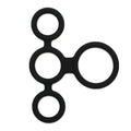 This cockring has four rings that are attached to each other, one with a diameter of 4 cm, one with a diameter of 2.5 cm and two with a diameter of 2 cm. The largest ring 4 cm needs to be worn around the scrotum. The second ring 2.5 cm should be worn around the shaft. The two smaller rings both 2 cm should be placed around one testicle each, splitting the balls.