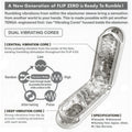 Rumbling vibrations from within the elastomer sleeve bring a sensation from another world to your hands. This is made possible with yet another TENGA engineered first two Vibrating Cores housed inside the elastomer. Masturbator that can be opened out, With 4 different dotted and grooved textures, With an integrated drying stand, Hygienic use because it is easy to clean, An absolute must-have for your favourite feature! This transparent masturbator gives HIM twice the pleasure! While the head is pampered by a ball, countless nubs, grooves and waves stimulate the shaft. Strong vibrations from the tip provide rumbling sensations with each stroke. Pure pleasure! Waterproof. USB rechargeable.