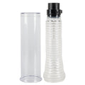 Penis potency pump and masturbator in one. Depending on how the pump ball is attached to the tube on the cylinder, air can either be sucked out of the penis pump, in order to create an effective vacuum for penis potency training or can flow inside for an amazing blow job suction effect. With multi speed glans vibration. Transparent cylinder with a removable dotted sleeve inside.
