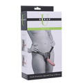 Both partners can experience the pleasure of penetration with this innovative strap on harness set. Perfect for two women or pegging, the smaller dildo slips easily and comfortably into the wearer while a small nub stimulates her clit. The larger dildo is slim and sleek for comfortable anal or vaginal penetration. The sexy and adjustable harness keeps the dildo in place for even your most vigorous thrusting action. 10 inches in total length. Longer dildo measures 7 inches insertable, 1.5 inches at widest diameter. Small dildo measures 3.5 inches insertable length, 1.5 inches at widest diameter.